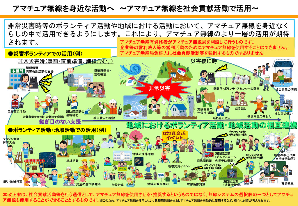 また、消防団が行う活動に関する通信についてもアマチュア無線を利用することができます。